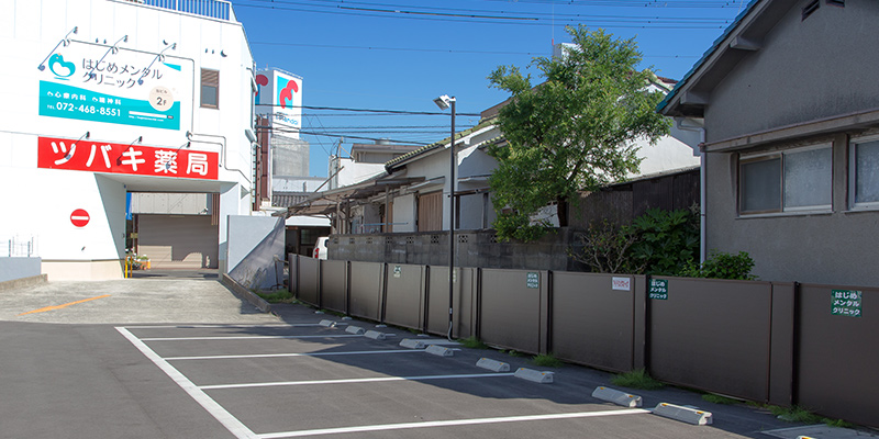 尾崎駅東出口からクリニックに向かってくると当院専用駐車場が5台あります。